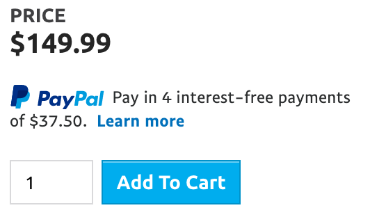 Why are financing options important? Consumer financing solutions are increasingly popular as shoppers seek interest free solutions for their online purchases. In addition to higher conversion rates, PayPal has seen its merchants’ average order value (AOV) increase on average 25 percent when offering PayPal Credit, their 6 month interest free service. In October, PayPal introduced a second consumer financing solution, Pay in 4, which is an interest free service that offers a shorter payback period.